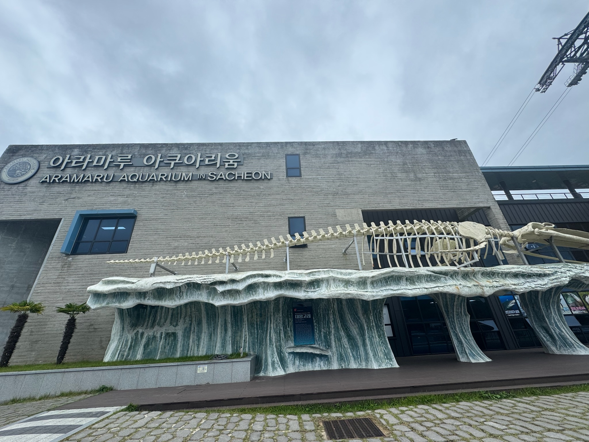 다음날 아침, 남해에서 차로 이동해 도착한 곳은 사천의 아라마루 아쿠아리움이었습니다. 이곳은 2021년 개장한 경남 최대 규모의 아쿠아리움으로, 430여 종의 해양생물과 30여 종의 육지동물이 함께 살아가는 복합 전시 공간입니다.