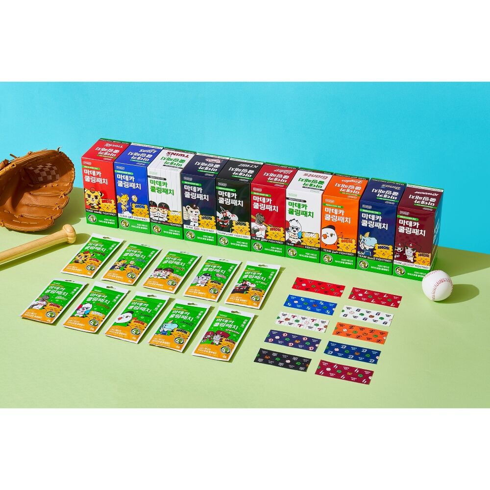 마데카 쿨링패치 KBO 에디션은 동국제약과 KBO가 2025년 시즌 한정으로 협업해 출시한 스페셜 한정판도 판매 중에 있습니다. 10개 KBO 구단별 마스코트와 컬러, 야구 요소를 디자인에 반영해 야구 팬을 위한 소장 가치와 재미를 더한 제품입니다. 제품을 살때마다 모으는 재미도 있을 것 같습니다.